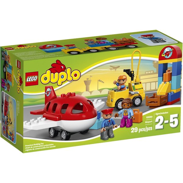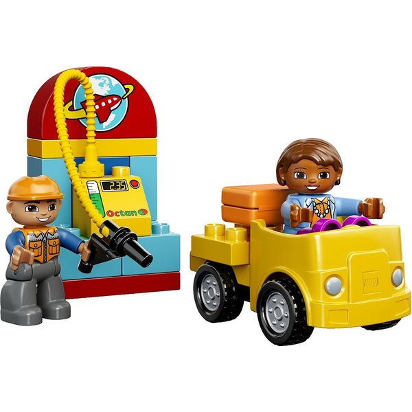 Zbuduj kolorowe lotnisko razem z klockami Lego i rozpocznij wesołą zabawę. Pani w punkcie bagażowym odbierze walizki pasażerów, kierowca w żółtej cysternie zadba o ty, by samolot zawsze miał paliwo. Czas wejść na pokład i ruszać w przestworza! Sprawdź, czy wszyscy pasażerowie są na miejscach, siądź za sterami maszyny i wzbij się w powietrze!