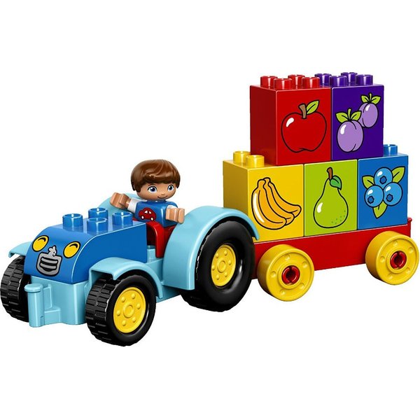 Mój pierwszy traktor to wspaniała zabawa i nauka w jednym! W zestawie maluch znajdzie klocki z ilustracjami owoców, które wprowadzą dziecko w świat przyrody oraz kolorów. Maluszek z pewnością będzie chciał poznać nazwy owoców oraz ich charakterystyczne kolory. Może także odgrywać wymyślone historie, zbierając razem z figurkami Lego owocowe plony!