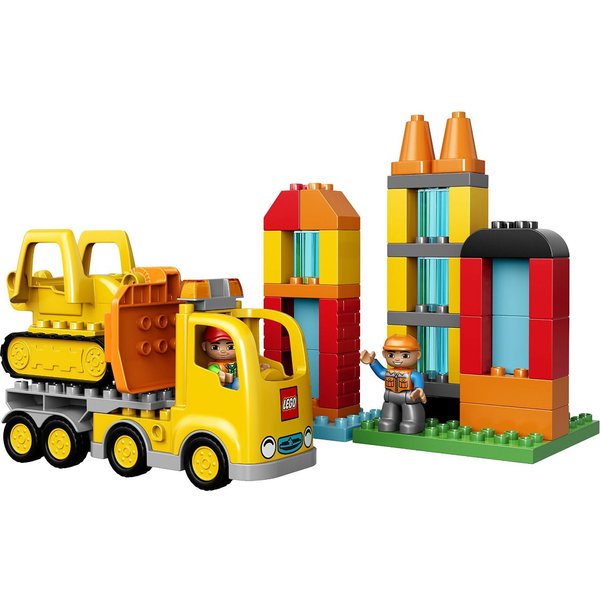 Na placu budowy czeka cię wiele pracy! Zbuduj ciężarówkę z naczepą, dźwig-koparkę oraz spychacz i rozpocznij budowę. Przenoś ciężkie elementy dźwigiem, a później zamień go w koparkę i wykopuj doły, przewoź cegły na naczepie ciężarówki i użyj spychacza do przesuwania gruzu...możliwości są ogromne! Pamiętaj żeby każdy z pracowników miał na głowie kask - to dla jego bezpieczeństwa. Mały budowniczy z pewnością będzie zachwycony tym zestawem!
