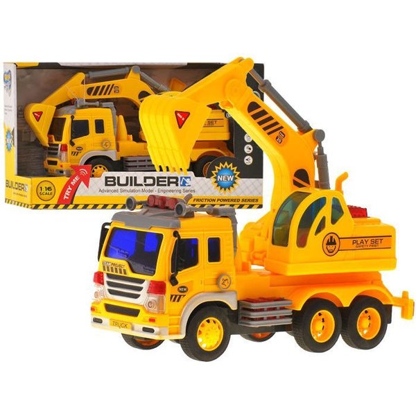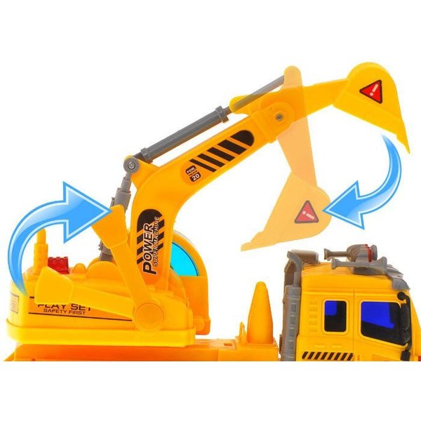Umiejętności budowlane można rozwijać także w domowym zaciszu, zwłaszcza z tym modelem koparki, posiadającym ruchomą łyżkę, ciekawe efekty dźwiękowe i kolorowe światełka, które największe wrażenie zrobią po zmroku!