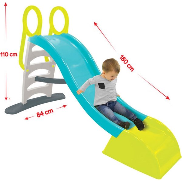 Zjeżdżalnia to jeden z elementów placu zabaw, który jest najbardziej oblegany przez dzieci. Teraz maluch może mieć swój prywatny ślizg, który postawić możemy w ogródku. To aż 180 cm wspaniałej zabawy! Dodatkowo można do niej podpiąć natrysk wodny, zapewniający jeszcze więcej frajdy i ochłodę w ciepłe, letnie dni. Zjeżdżalnia wyposażona została również w antypoślizgowe schodki i specjalne uchwyty, które mają zagwarantować bezpieczeństwo maluchowi. Oprócz tego zadbają o nie wysokie ścianki ślizgu oraz zaokrąglone krawędzie. Dodatkowo stabilna konstrukcja pozwoli na pewną zabawę bez strachu!