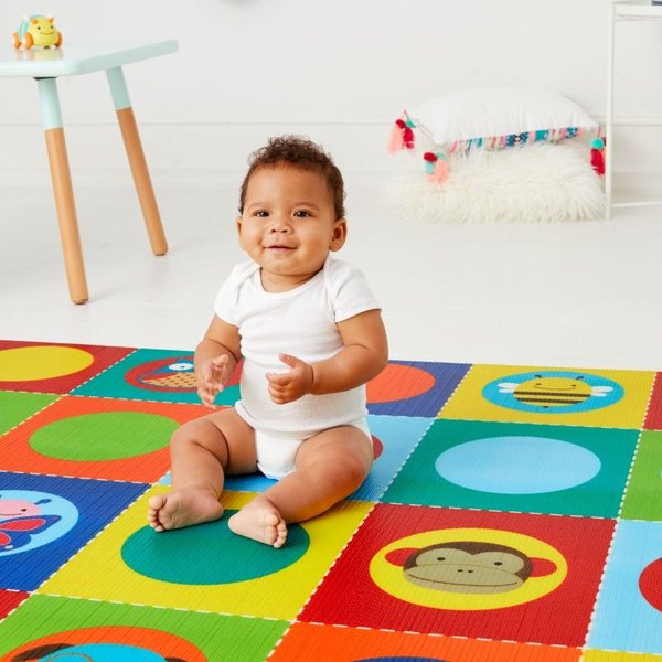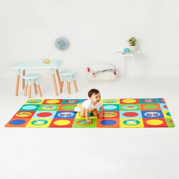 Wychodząc na przeciw oczekiwaniom rodziców Skip Hop stworzył praktyczny produkt 2w1 - stylowy dywan i mata do zabawy dla twojego malucha! Sama zdecyduj czy w danej chwili ma służyć jako ozdoba twojego salonu, czy też plac do zabawy dla twojej pociechy.Jedną stronę zdobi stylowy print, na drugiej zaś przedstawione są urocze, kolorowe zwierzątka, które pobudzą wyobraźnie dziecka i zachęcą do zabawy.Duży wymiar 218 x 132 cm to z pewnością jego wielka zaleta - maluszek może zaprosić do zabawy swoich przyjaciół!