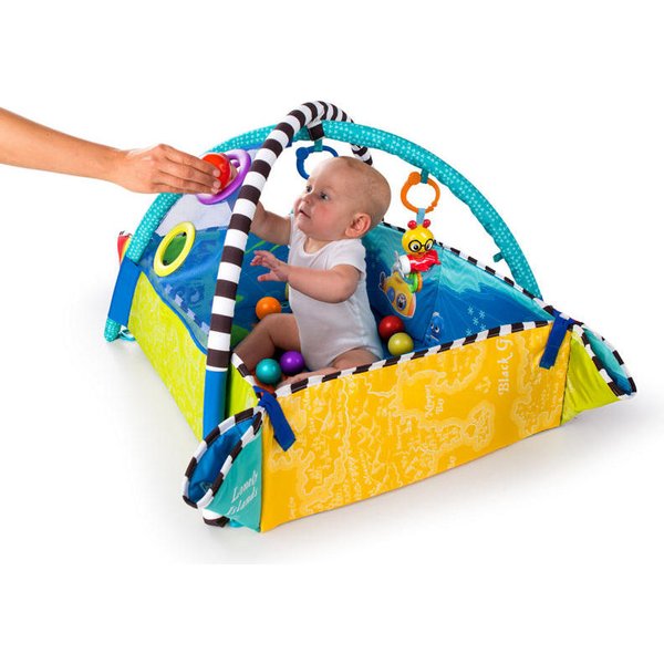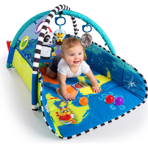 Mata "Wielka podróż Baby Einstein" rośnie wraz z dzieckiem! W pierwszym etapie życia dziecka posłuży jako standardowa mata edukacyjna z pałąkiem pełnym zabawek do trącania. Gdy maluszek podrośnie i będzie już samodzielnie siedział można stworzyć basenik z miękkimi piłeczkami do zabawy!