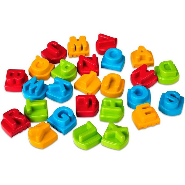 W zestawie znajdują się literki z alfabetu (26) w wersji 3D oraz 26 kafelków, które przedstawiają zwierzęta oraz różne przedmioty. Edukacyjny stolik to, aż 150 treści edukacyjnych.