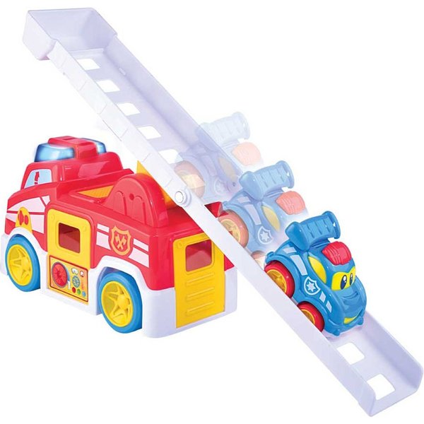 - wóz strażacki posiada rozsuwaną drabinę na dachu oraz otwierane drzwiczki