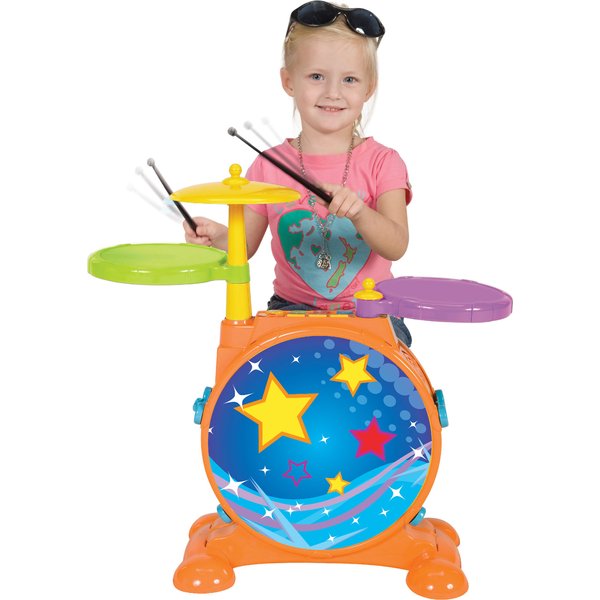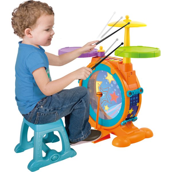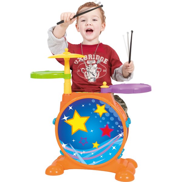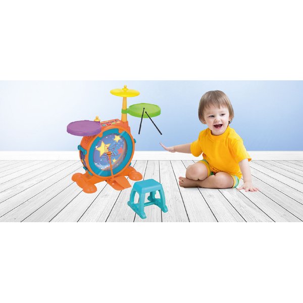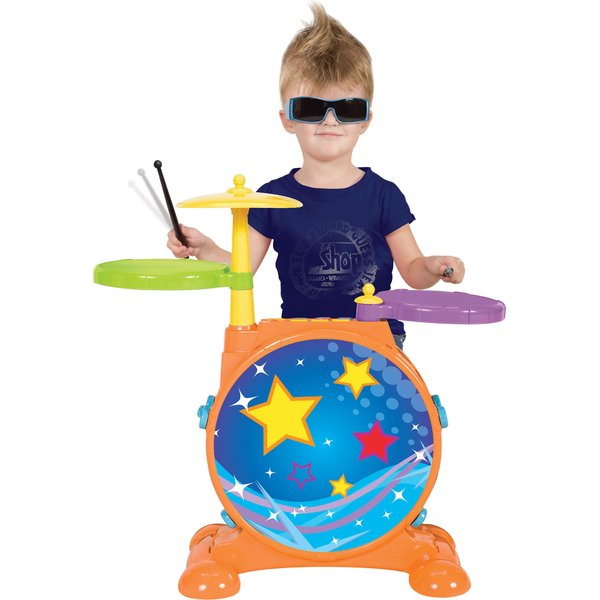 Poczuj się jak prawdziwy członek zespołu - perkusista! Gra na bębnach wprowadzi dziecko w świat cudownych dźwięków, które będą rozwijać i stymulować zmysły słuchu. Wybijanie rytmów na poszczególnych elementach instrumentów rozwinie u dziecka koordynację i synchronizację jego ruchów.