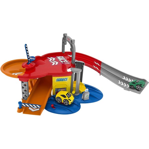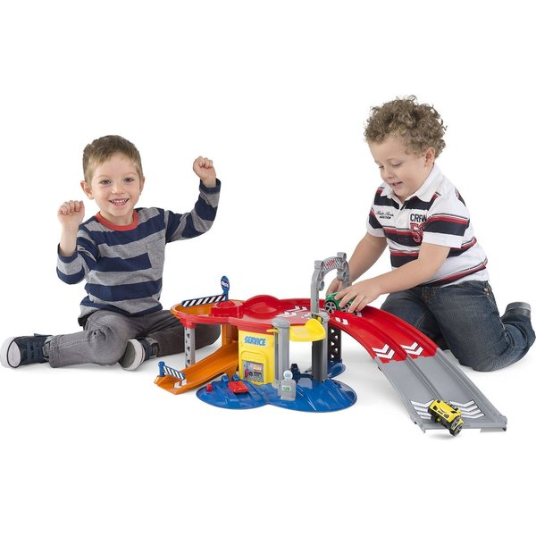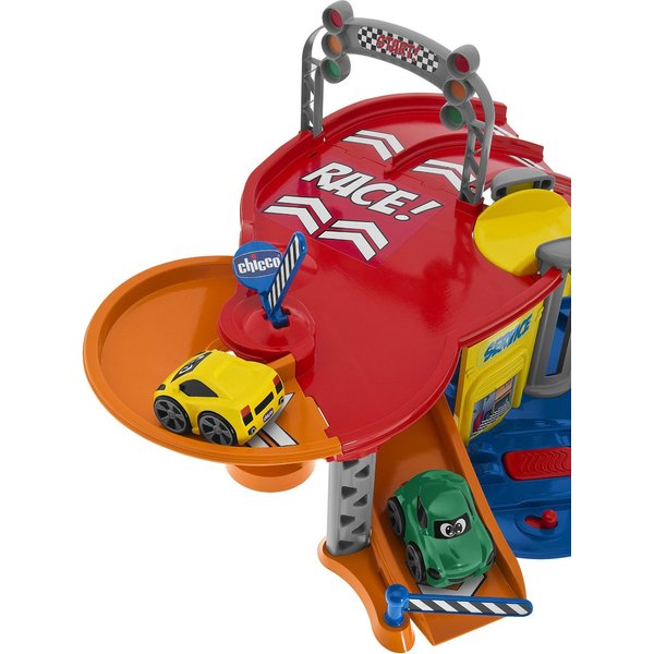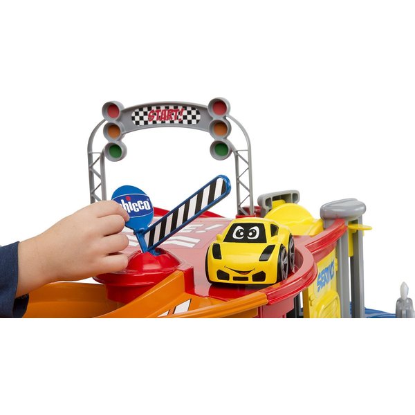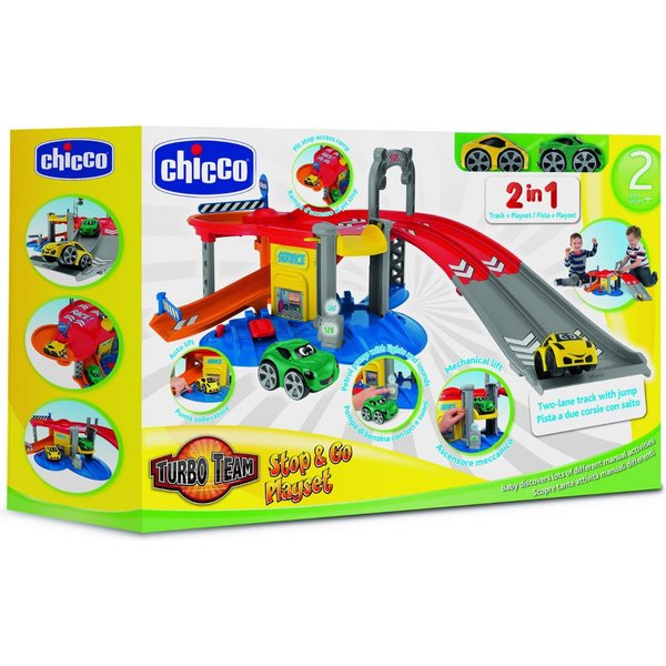 Posiada wszystko to, co powinno mieć idealne centrum serwisowe aut, a więc ruchomą windę, stację benzynową, a także liczne zakręty zapewniające jeszcze więcej zabawy! Dwupoziomowy garaż Chicco wyposażony jest w dwa samochodziki Turbo Team. Samochodziki posiadają prosty i praktyczny system ładowania - wystarczy pociągnąć do tyłu!