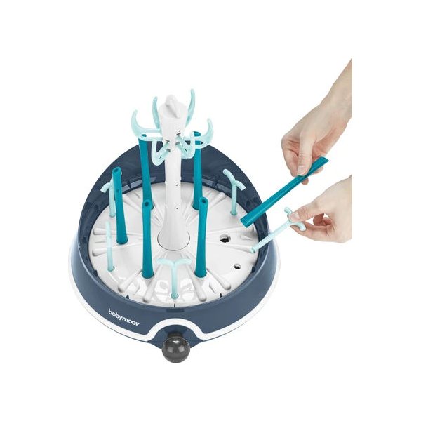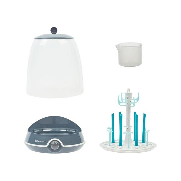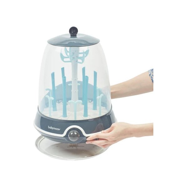 Elektroniczny sterylizator na parę od Babymoov, który pozwoli zachować butelki w higienicznej czystości. Będziemy w nim mogli również wyczyścić inne akcesoria do karmienia czy od laktatora, a dzięki systemowi dysz parowych, efekty będą zadowalające. Wyposażony w alarm dźwiękowy poinformuje nas gdy proces sterylizacji się zakończy. Produkt ten posiada jeszcze jedną funkcję.Zdejmowana środkowa część sprawia, że szybko zamienimy go w suszarkę ze zbiornikiem na wodę.
