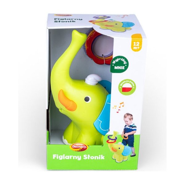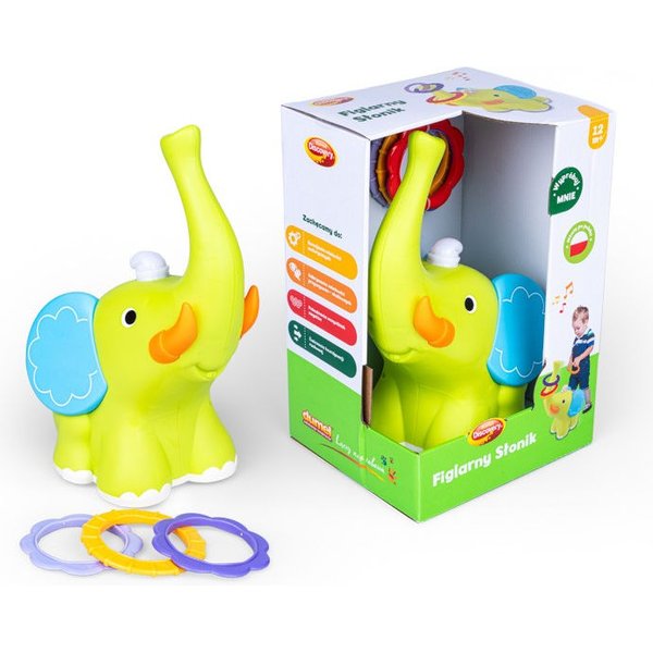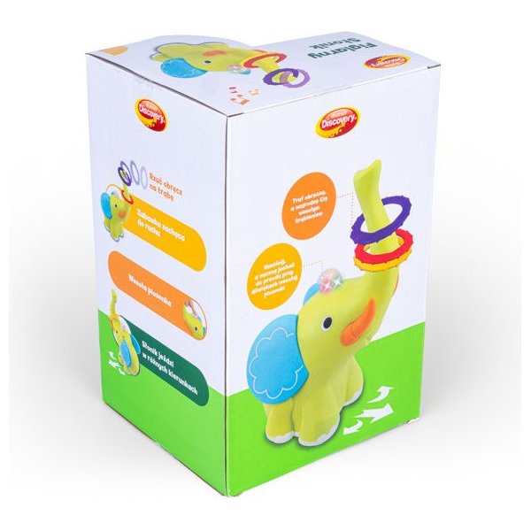Figlarny słonik od Dumel Discovery, który pomoże wytrenować precyzję i celność! Cała zabawa polega na tym, aby kolorowymi obręczami trafić na trąbę słonia. Jednak to nie takie proste! Słonik potrafi się przemieszczać, co sprawia, że cel jest trudniejszy do złapania! Dodatkowo po naciśnięciu czapeczki słonia, usłyszymy piosenki w języku polskim. Z takim towarzyszem zabawa przyniesie dużo frajdy i radości.
