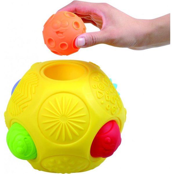 Miękka piłka sensoryczna marki Dumel Discovery to świetna zabaw dla najmłodszych, która wspomaga naukę integracji sensorycznej oraz rozwija zdolności poznawcze malucha. Intensywne kolory pobudzają zmysły wzroku dziecka. Piłeczka posiada różne faktury oraz otwory na kolorowe klocki - każdy klocek ma inny kształt i kolor. Zabawka z pewnością zaciekawi malucha i zachęci go do zabawy.