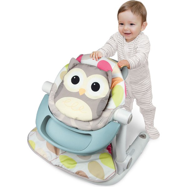 Miękki fotel w postaci sowy to idealne miejsce na zabawę dla malucha. Produkt pomoże maluchowi stawiać swoje pierwsze kroki - dzięki regulacji prędkości kółek można dostosować je do aktualnych umiejętności dziecka. Fotel sprawdzi się także jako miejsce do karmienia. Zabawki znajdujące się na fotelu zachęcą malucha do zabawy. Dziecko podczas zabawy może rozwijać umiejętności motoryczne, uczyć się chodzić, ćwiczyć swoje zdolności manualne i wiele innych.