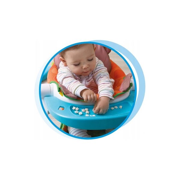 Jest on niezwykle funkcjonalny, co pozwala wykorzystać go jako fotel, chodzik, jeździk czy panel z aktywnościami. Wyposażony został w cztery kółka z możliwością ustawienia prędkości ich obrotu. To pozwoli dostosować pchacz do możliwości malucha. Stabilna i wytrzymała konstrukcja gwarantuje bezpieczeństwo i pewność dziecka podczas użytkowania. Doskonale sprawdzi się podczas nauki samodzielnego stawiania pierwszych kroków. Odłączany panel umożliwia zabranie ze sobą w podróż zabawkę, któa wspomaga rozwój intelektualny i motoryczny.