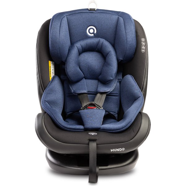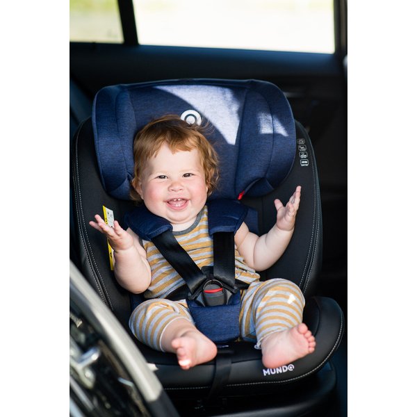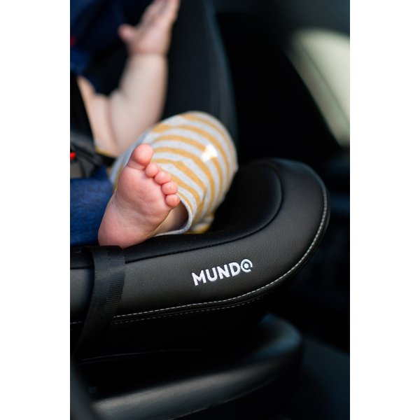 Bezpieczeństwo ponad wszystko! Bez względu na ustawienie fotelika, mali pasażerowie nie są narażeni na jakiekolwiek niebezpieczeństwo. 5-punktowe pasy z wygodną regulacja długości, amortyzują siły czołowych kolizji, a kubełkowy kształt zapewnia dodatkową ochronę boczną. Mundo spełnia normę ECE R44/04