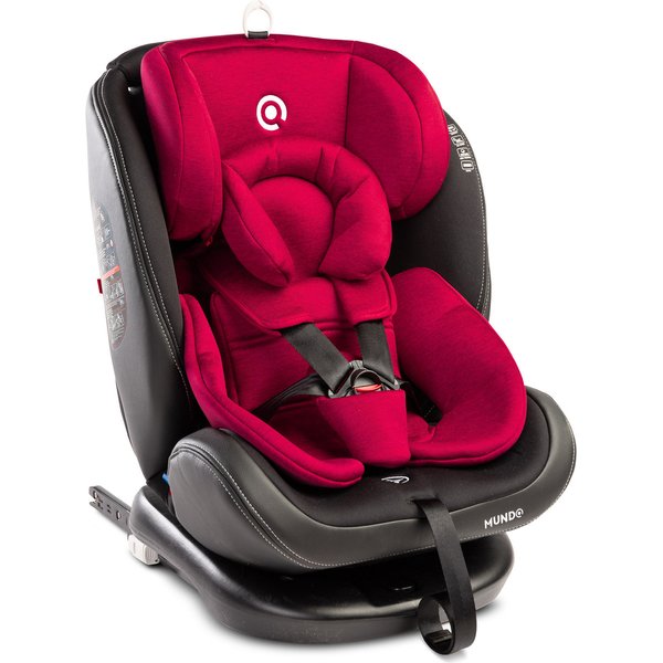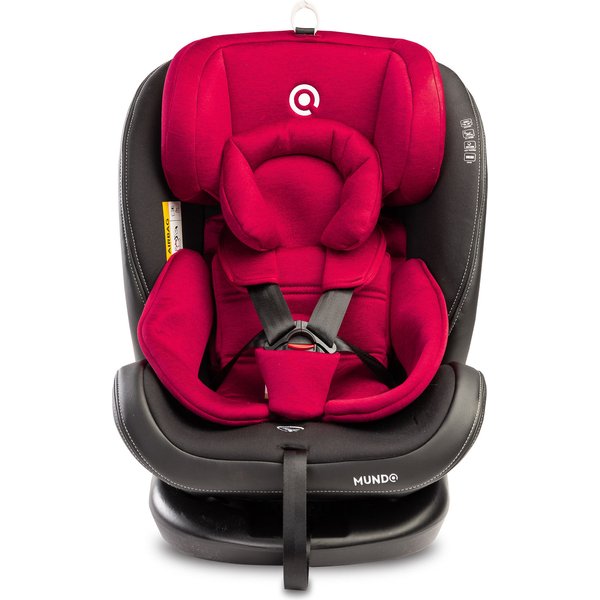 Bezpieczeństwo ponad wszystko! Bez względu na ustawienie fotelika, mali pasażerowie nie są narażeni na jakiekolwiek niebezpieczeństwo. 5-punktowe pasy z wygodną regulacja długości, amortyzują siły czołowych kolizji, a kubełkowy kształt zapewnia dodatkową ochronę boczną. Mundo spełnia normę ECE R44/04