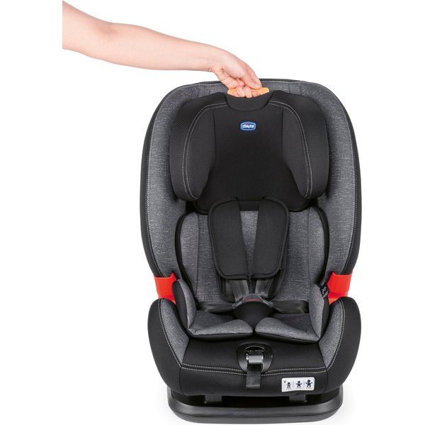 Fotelik Akita od Chicco przeznaczony został dla dzieci w grupie 1/2/3 tj od 9-36 kg. Montowany jest przodem do kierunku jazdy za pomocą 3 punktowych pasów bezpieczeństwa. Z tą różnicą, że dzieci z grupy 1 zapinane są dodatkowo 5 punktowymi pasami. Dla dzieci starszych zamontowana została specjalna prowadnica, która pozwoli na odpowiednie zapięcie fotelika. Dla najmłodszych istnieje również opcja odchylenia oparcia w 3 pozycjach. Akita posiada specjalną rączkę za pomocą, której jednocześnie dopasujemy wysokość zagłówka oraz wewnętrznych pasów. Posiada wygodną tapicerkę, którą bez problemu można zdjąć i wyprać co pozwoli utrzymać fotelik w czystości.