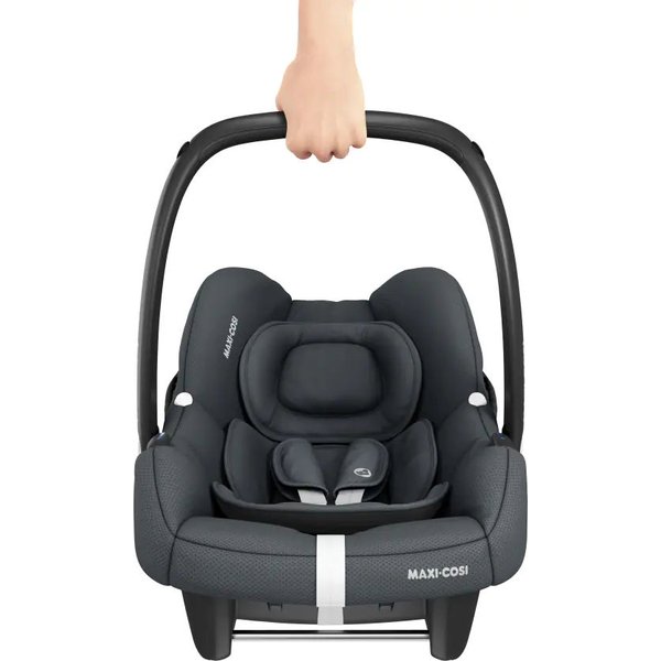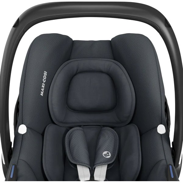 Jego montaż ułatwia dedykowana baza CabrioFix i-Size z systemem ISOFIX (do kupienia osobno). Jeśli jednak Twoje auto nie posiada zaczepów Isofix, to bez problemu można użyć samochodowych pasów bezpieczeństwa do zamontowania fotelika. CabrioFix I-Size jest bardzo lekki, dzięki czemu noszenie dziecka nie będzie zbyt dużym obciążeniem dla świeżo upieczonych rodziców. Dla wygody rodziców i dzieci zastosowane rozwiązania konstrukcyjne umożliwiają przypięcie fotelika do ramy większości wózków spacerowych marki Maxi Cosi. Ułatwi to przeniesienie śpiącego malucha z samochodu do innych pomieszczeń, umożliwi szybki spacer lub wizytę w sklepie bez konieczności przekładania niemowlęcia do wózka. Zdejmowanie fotelika ze stelaża jest nieskomplikowane i wygodne do wykonania tylko jedną ręką dzięki przyciskom z funkcją pamięci. Fotelik posiada miękką, wyjmowaną wkładkę dla najmniejszych dzieci, duży daszek chroniący przed słońcem lub deszczem i zagłówek otulający główkę niemowlęcia.