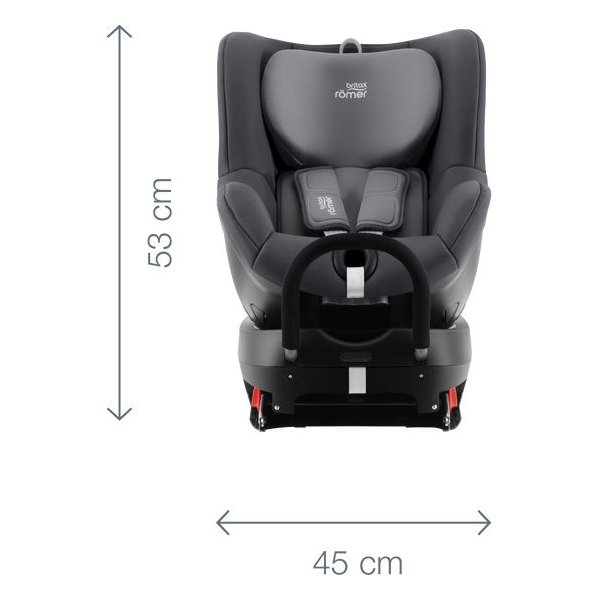 Fotelik samochodowy Dualfix2 R od Romer przeznaczony jest dla dzieci w przedziale wagowym 0-18 kg. Jest on połączeniem bezpieczeństwa, a przy okazji eleganckiego wyglądu. Montowany jest przodem lub tyłem do kierunku jazdy za pomocą systemu ISOFIX oraz specjalnej "nogi", która zapewni jeszcze większą stabilność. Wsadzanie maluszka do niego z pewnością ułatwi funkcja obrotu siedziska o 360o. Szeroka możliwość regulacji pozwoli lepiej dopasować go pod indywidualne wymagania dziecka. Oparcie można regulować w 4 stopniach zarówno podczas jazdy przodem i tyłem. 5 punktowe pasy zostały przystosowane tak, aby nie było potrzeby używania wkładki dla niemowlaka. Dodatkowo posiadaj one specjalne nakładki, które uchronią maluszka przed otarciami.