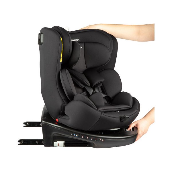 Fotelik jest montowany w samochodzie za pomocą dołączonej bazy, pasa Top Tether (podczas przewożenia dziecka tyłem do kierunku jazdy) i zaczepów Isofix. Posiada wbudowane pasy bezpieczeństwa dla maluchów. Jego atutem jest także miękka wkładka dla noworodka. Tapicerka tego modelu została wykonana z oddychającej tkaniny, wytrzymałe na przypadkowe rozdarcia i doskonale odprowadzającej wilgoć podczas upałów. Dużym ułatwieniem jest także funkcja obrotu 360 stopni, które ułatwi Ci wkładanie i wyjmowanie maluszka z fotelika.