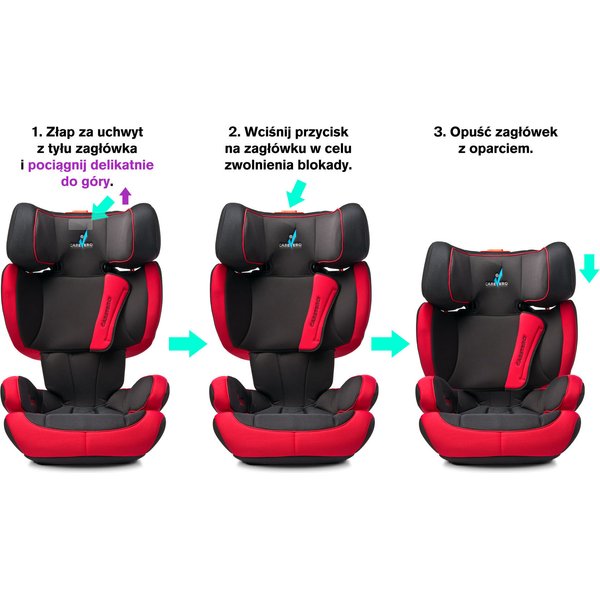 Oparcie w foteliku jest regulowane co daje możliwość odpowiedniego dopasowania do wzrostu dziecka i zapewnienia mu odpowiedniej ochrony. Konstrukcja fotelika została stworzona z myślą o jak największym bezpieczeństwie, wykonana z najwyższej jakości plastiku.