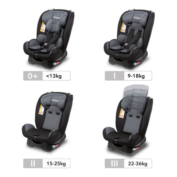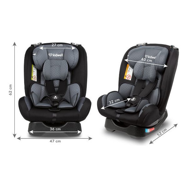 Fotelik samochodowy Maver od Kidwell, który przeznaczony jest dla dzieci w przedziale wiekowym od 0 do 36 kg. To sprawia, że zostanie on z nami na dłużej. Bez konieczności wymiany go na inny model. Montuje się go za pomocą pasów bezpieczeństwa i oferuje nam możliwość ustawienia go przodem lub tyłem do kierunku jazdy (do 18kg).