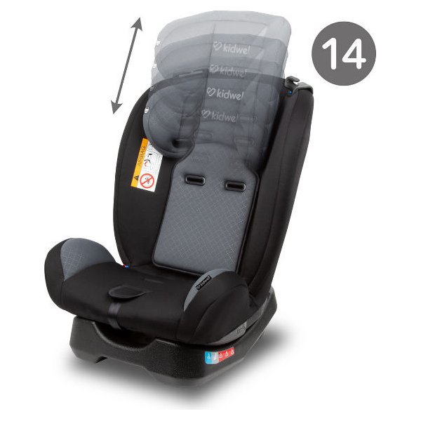 Firma Kidwell szczególny nacisk kładzie na bezpieczeństwo użytkowania ich produktów. Najważniejsze jest odpowiednie i stabilne zamontowanie go w samochodzie. Jednak, aby sprawdzał się on w każdym wieku posiada szeroką możliwość regulacji tak, aby jak najlepiej dostosować go do wzrostu maluszka. Odpowiednie dopasowanie również odgrywa dużą rolę w zapewnieniu odpowiednich warunków podczas podróży. Tak oto model Maver wyposażony został w 14 poziomów regulacji zagłówka. Natomiast 4 stopniowa regulacja oparcia pozwala na przewożenie noworodków. Dodatkowo, aby zwiększyć komfort dla najmłodszych fotelik posiada podwójną wkładkę redukcyjną. Wykonana została z niezwykle miękkiej pianki, która zapewnia odpowiednią amortyzację.