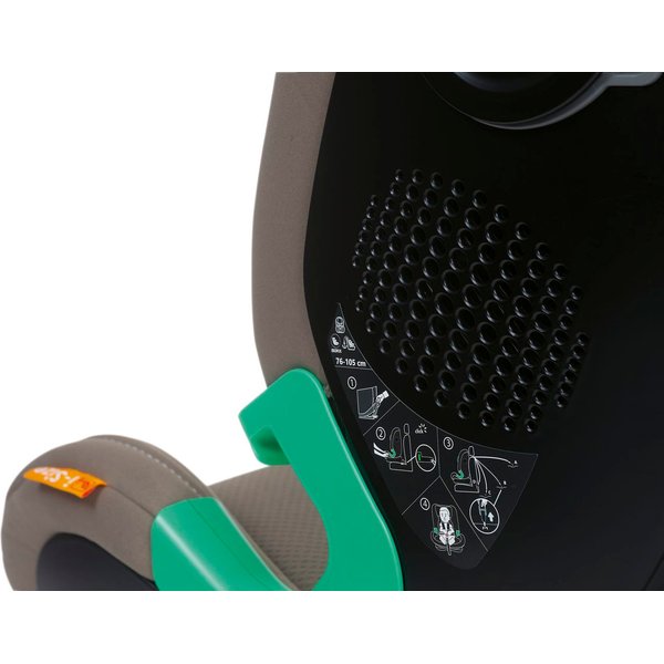 Jeśli wzrost dziecka nie przekracza 105 cm, to przy montażu fotelika wykorzystuje się zintegrowaną bazę ISOFIX oraz pas Top Tether, który zapewnia fotelikowi dodatkową stabilizację. Większe dzieci (od 100 cm wzrostu) mogą już podróżować przypięte pasami samochodowymi. Dla lepszego dopasowania do potrzeb rosnącego dziecka fotelik posiada odchylane w 3 pozycjach oparcie i regulowaną wysokość zagłówka.