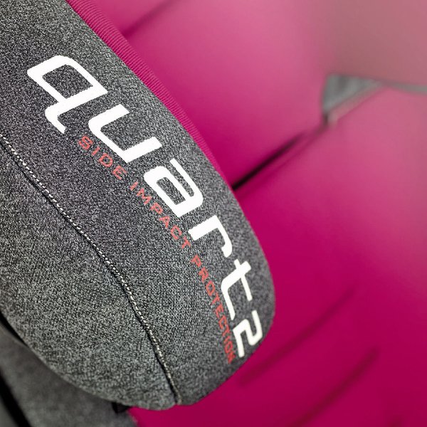Fotelik samochodowy Quartz jest przeznaczony dla grupy 2/3 (od 15 do 36 kilogramów masy ciała). Jest to produkt nowoczesny, wyposażony w zaczepy Isofix oraz w Proportional Height Adjustment, czyli system regulacji zagłówka. Umożliwia on dostosowanie wysokości w 11 różnych pozycjach. Również oparcie posiada system regulacji. Wybierając jedną z trzech pozycji, dziecko będzie miało zapewniony wygodny wypoczynek w foteliku dostosowanym pod jego budowę ciała. Natomiast o wygodę maluszka, szczególnie porą letnią, dba oddychająca wyściółka fotelika z opcją Soft Touch. Cały fotelik posiada także liczne otwory wentylacyjne przepuszczające powietrze.