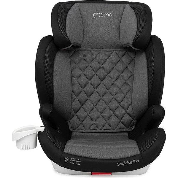 Fotelik samochodowy Quick Fix o Momi, który przeznaczony został dla dzieci o wadze od 15 do 36 kg. Montowany za pomocą systemu Isofix, przodem do kierunku jazdy.