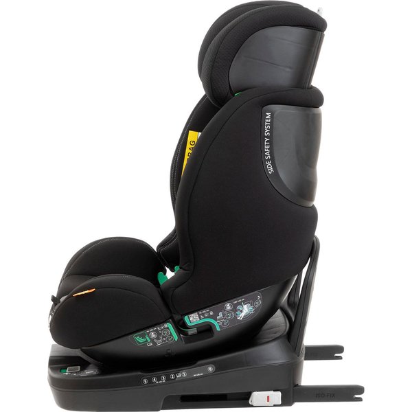 Dużym atutem tego modelu fotelika jest system obrotowy 360°, który ułatwia wyjmowanie i wkładanie dziecka do fotelika. Dla lepszego dopasowania do potrzeb rosnącego dziecka fotelik posiada odchylane w 6 pozycjach oparcie i regulowaną wysokość zagłówka. Tapicerka tego modelu została wykonana z trwałego i oddychającego poliestrowego materiału. Dla najmłodszych dzieci producent przewidział specjalną wkładkę redukującą wielkość siedziska, poprawiającą komfort i bezpieczeństwo w trakcie podróży.