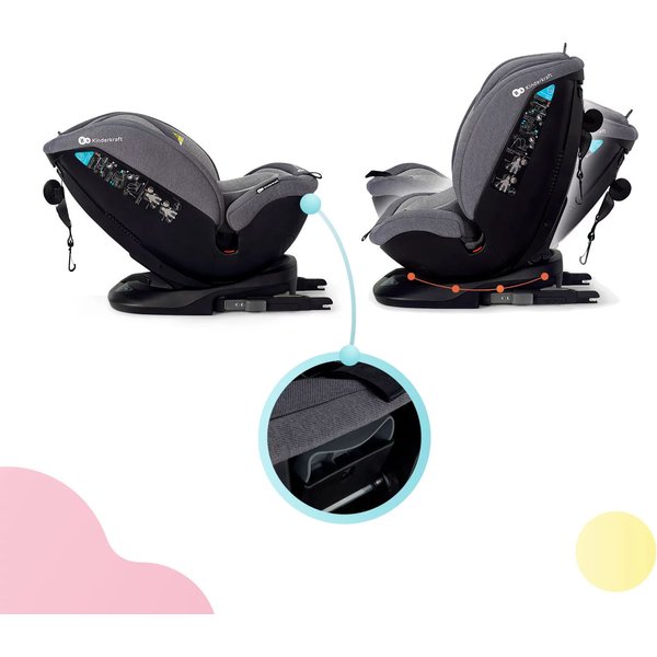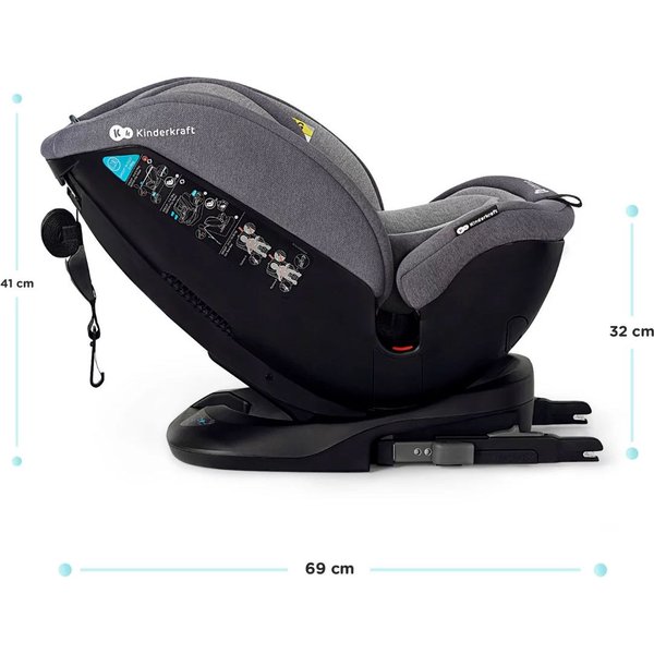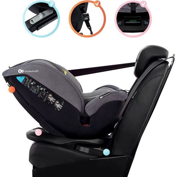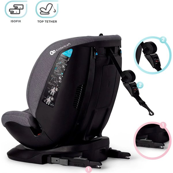 • pewny i wygodny w montażu - montaż jest pewny i intuicyjny dzięki systemowi ISOFIX, w zależności od grupy wagowej, do montażu używamy dodatkowo pasa TOP-TETHER lub pasów samochodowych. Istnieje możliwość montażu tylko za pomocą pasów auta.