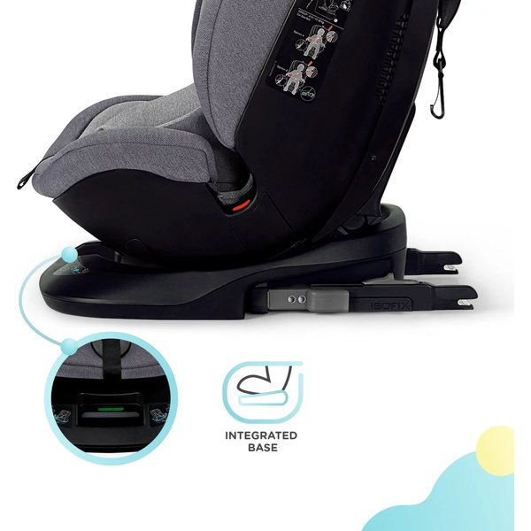 • zintegrowana baza - fotelik jest zintegrowany z bazą, która pozwala na obrócenie bokiem w stronę drzwi