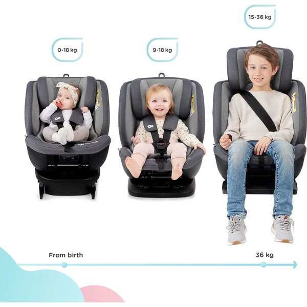 • od urodzenia do 36 kg - przeznaczony dla dzieci od 0 do 36 kg, dzięki czemu służy przez wiele lat