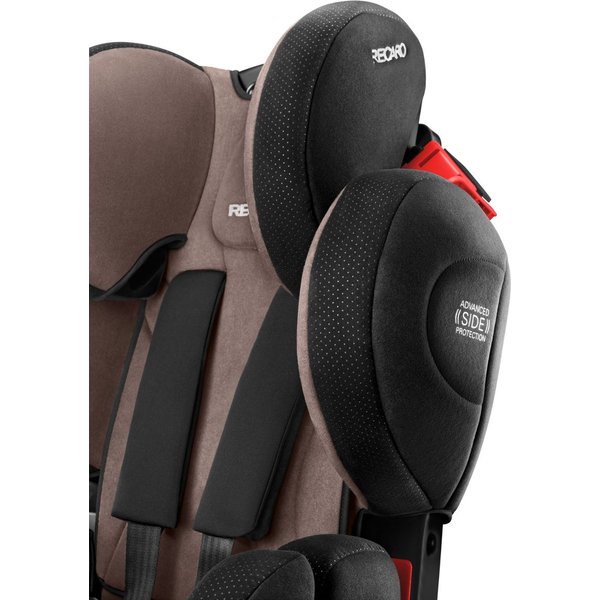 Został także wyposażony w System Ochrony Bocznej (Advanced Side Protection), który zapewnia optymalną ochronę główki, klatki piersiowej oraz okolic bioder małego pasażera. Fotelik chroni podwójnie główkę mniejszych dzieci, gdy zagłówek jest ustawiony na najniższym poziomie.