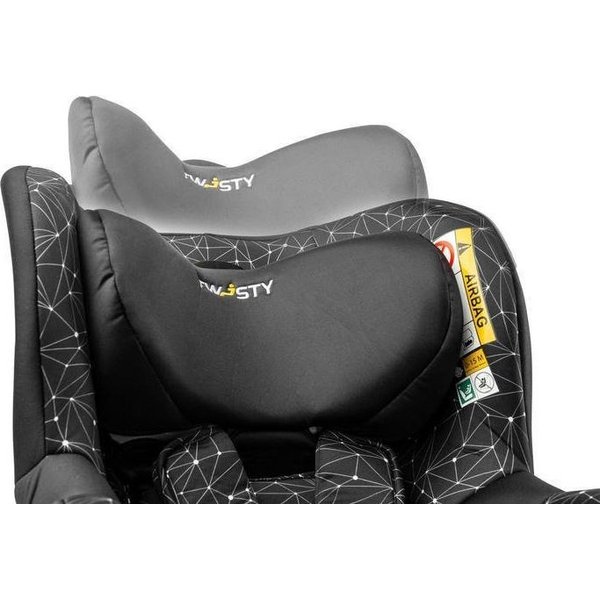 Bezpieczeństwo i komfort to dwa główne aspekty, którymi kierują się rodzice podczas wyboru fotelika samochodowego. Fotelik Twisty łączy te dwie cechy! Dzięki niemu najmłodsi będą mogli podróżować tyłem do kierunku jazdy. Posiada najbardziej restrykcyjną normę homologacji ECE R129 inaczej i-Size. Obrotowa o 360o baza pozwala w łatwy sposób umieścić dziecko w fotelik. Wyposażony został w 5-punktowe pasy z nakładkami, które zapobiegają otarciom. Wykonany został z miękkiej w dotyku tkaniny, a dodatkowy zestaw wkładek doda jeszcze więcej komfortu podczas podróżowania. Fotelik można dopasować do dziecka dzięki 7-stopniowej regulacji zagłówka, a gdy maluch będzie chciał się zdrzemnąć na pewno przyda się wtedy 3-stopniowa regulacja pochylenia siedziska. Ściągana tapicerka pozwala utrzymać fotelik w czystości.