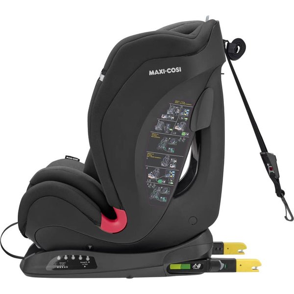 Fotelik ten jest montowany w samochodzie za pomocą zaczepów Isofix oraz górnego pasa mocującego, aby pozycja fotelika była jeszcze bardziej stabilna w czasie jazdy. Maluszki należy przypiąć za pomocą 5-punktowych pasów bezpieczeństwa. Starsze dzieci (po 4. roku życia) mogą być przewożone w tym foteliku bez wykorzystania dodatkowego pasa, gdyż są już przypinane samochodowymi pasami bezpieczeństwa. Fotelik jest wyposażony we wskaźniki na systemach kotwiczenia ISOFIX, abyś zawsze mógł mieć pewność, że fotelik jest prawidłowo zamontowany.