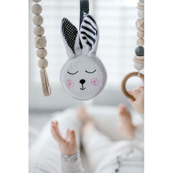 Szumiący króliczek dzięki niewielkim wymiarom oraz delikatnym, mięciutkim tkaninom jest w pełni bezpieczny dla maluszka już od pierwszych chwil życia.