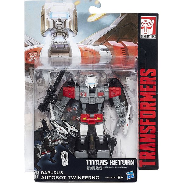 - figurka Autobot Twinferno (wys. około 15 cm) z odczepianą głową, którą przemienia się w mini figurkę Titan Master