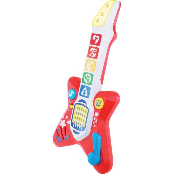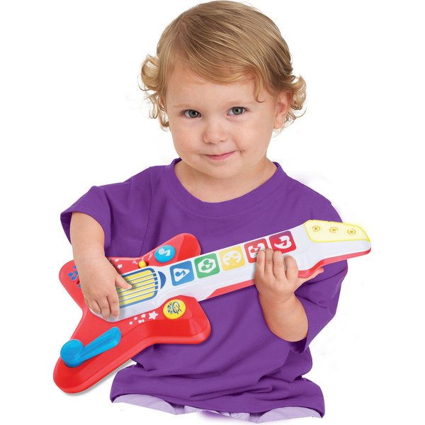 Zabawka ta pozwoli Twojemu dziecku rozwijać wyobraźnię, zmysły, świadomość muzyczną i niezwykle ważną sprawność manualną. Realistyczne wykonanie tej interaktywnej zabawki pozwoli dziecku na świetną zabawę w gwiazdę rocka. Dwa tryby zabawy, regulacja głośności, migające światełka i mnóstwo przycisków zachęcających do dotykania i naciskania zainspiruje Twojego maluszka do koncertowanie i popisów wokalnych.