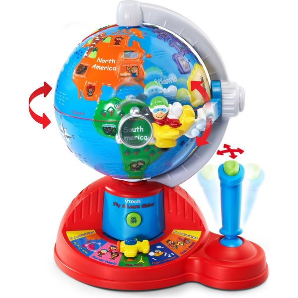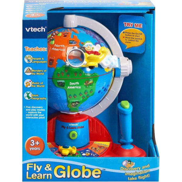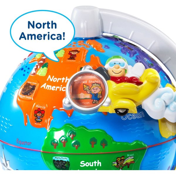 Za pomocą joysticka maluch będzie sterował samolotem z lupą po obracającym się wkoło globusie. Wystarczy, że najedzie lupą na wybrane miejsce, a sympatyczny głos lektora podzieli się z nim ciekawostką. Do wybory aż 5 edukacyjnych zabaw, dzięki którym pozna nazwy krajów i ich mieszkańców oraz obowiązujący język. Maluch usłyszy powitania w różnych językach, a także co jest najpopularniejszym miejscem w danym kraju. Odpowiadając na pytania lektora będzie się rozwijać i świetnie bawić!