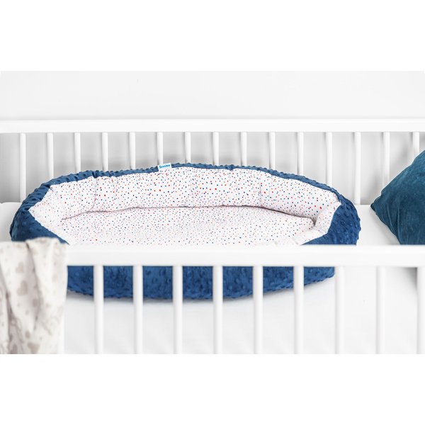 Gniazdo posłuży dziecko jako komfortowe i bezpieczne miejsce do leżakowania lub drzemek, wykonana z najwyższej jakości bawełny oraz materiału minky poszycie, zagwarantuje odpowiedni przepływ powietrza oraz nie będzie powodować otarć dziecka. Wnętrze gniazda jest wypełnione specjalnymi drobinkami elastycznego silikonu, dzięki któremu gniazdo jest mięciutkie i delikatne, dodatkowo można w każdym momencie uzupełnić wkład.