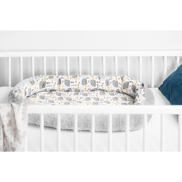 Gniazdo posłuży dziecko jako komfortowe i bezpieczne miejsce do leżakowania lub drzemek, wykonana z najwyższej jakości bawełny oraz materiału minky poszycie, zagwarantuje odpowiedni przepływ powietrza oraz nie będzie powodować otarć dziecka. Wnętrze gniazda jest wypełnione specjalnymi drobinkami elastycznego silikonu, dzięki któremu gniazdo jest mięciutkie i delikatne, dodatkowo można w każdym momencie uzupełnić wkład.