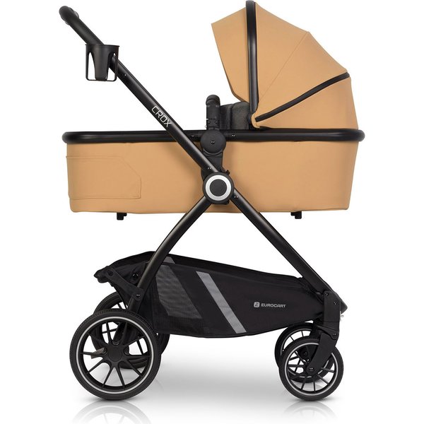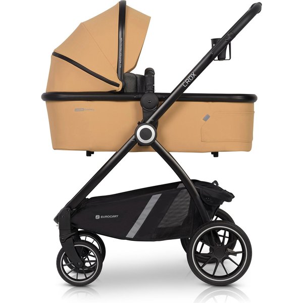 Gondola do wózka Crox od Euro-Cart pozwoli na użytkowanie tego modelu od pierwszych dni życia dziecka. Wyposażona w folię przeciwdeszczową pozwoli na spacery w mniej sprzyjających warunkach pogodowych. Dodatkowa osłonka z kołnierzem zabezpieczy maluszka przez chłodem podczas jesienno-zimowych spacerów. Euro-Cart dba o bezpieczeństwo w związku z czym gondola została wyposażona w odblaskowe elementy, które zwiększą widoczność po zmroku. Gondola wyłożona jest satynowym, bawełnianym wnętrzem co zapewni maluszkowi pełen komfort podczas długich wycieczek. Specjalny uchwyt do przenoszenia ułatwi transport gondoli podczas snu maluszka. nie będzie konieczności wybudzania go.