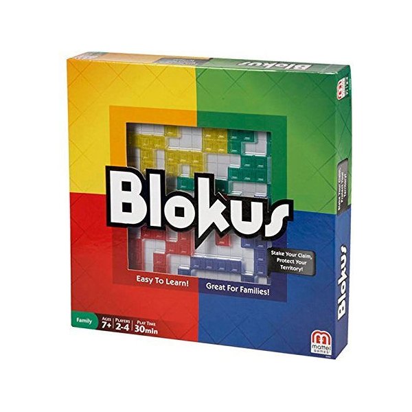 Gra planszowa Blokus przeznaczona dla 2-4 graczy każdy z nich otrzymuje 21 elementów, które kolejno umieszcza na planszy. Elementy należy tak układać by wybrany kolor gracza stykał się tylko i wyłącznie krawędzią. Obmyśl dobrą strategię i blokuj graczy tak by umieścić wszystkie swoje bloki zanim zabraknie miejsca.
