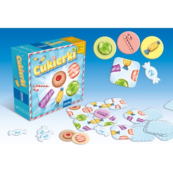 Cukierki to wspaniała słodka gra dla dwóch do pięciu graczy, każdy z nich ma za zadanie uzbierania jak największej ilości słodkości. Niestety każde ciasteczko, cukierek a nawet lizaczek rozpadały się na pół, tylko Ty możesz je ponownie złączyć. By to zrobić musisz umiejętnie dopasowywać kafelki, każdy złączony cukierek daje punkty, wygrywa ten kto uzbiera ich najwięcej.
