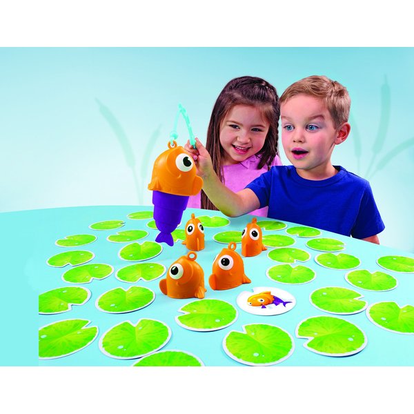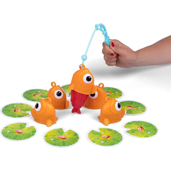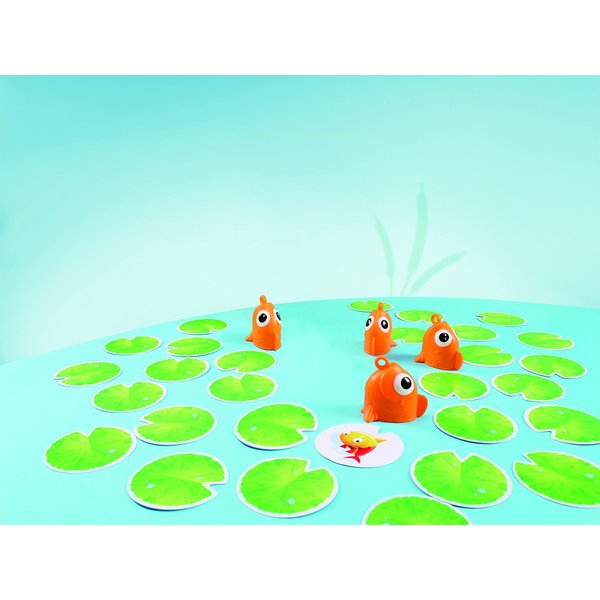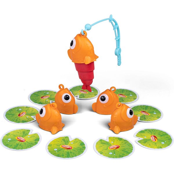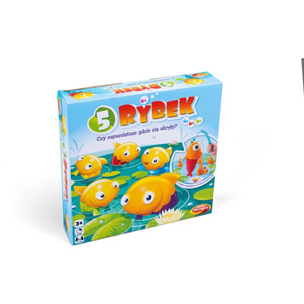 5 rybek od Dumel to kolejna rodzinna gra w której główną rolę gra dobra pamięć i koncentracja! Jednak rozrywka polega też na dobrej zręczności. Zadanie jest proste! Należy wylosować kartę, a następnie za pomocą wędki wyłowić rybkę z odpowiednim kolorem ogonka, który znajduje się na karcie. Jeżeli trafimy to zachowujemy kartę, jeżeli nie to odkładamy ją do pudełka. Trzeba uważać, żeby nie trafić na marudną żabę, która powoduje, ze tracimy kolejkę i oddajemy jedną z rybek.