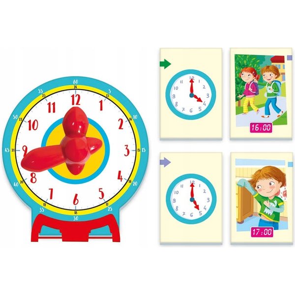 Nauka zegara i czasu to kolejna z umiejętności, którą dziecko będzie musiało nabyć. Dlatego marka Clementoni stworzyła zestaw, który dzięki zabawie pomoże zrozumieć maluchowi jak to wszystko działa. Oprócz tego gra będzie stymulowała pamięć i zdolność obserwacji.