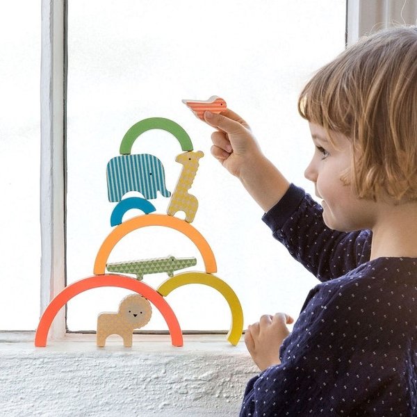 Gra Drewniana klocki Tęcza ze zwierzątkami Petit Collage