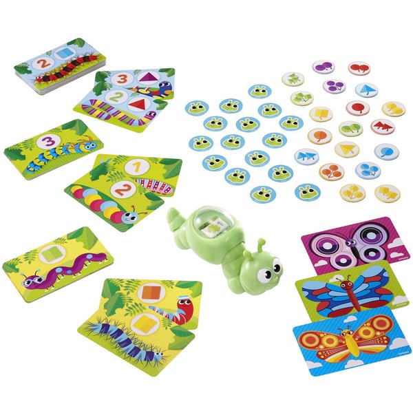 Ta świetna gra edukacyjna pozwoli dzieciom nie tylko wspaniale się bawić, ale także doskonalić wiele ważnych umiejętności, w tym współpracy, rywalizacji, cierpliwego czekania na swoją kolej i krytycznego myślenia. Dzieciaki wspólnie nauczą się kolorów, kształtów i cyferek, karmiąc głodną gąsienicę liściami, aby mogła się rozwinąć w pięknego motyla.