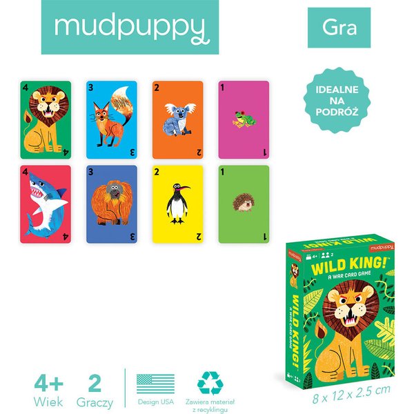 Gra karciana Wild King marki Mudpuppy dostarczy edukacyjnej rozrywki każdemu maluchowi spragnionemu zabawy w kameralnym towarzystwie.