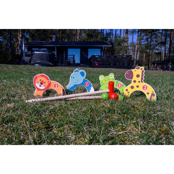 Rekreacyjna gra Krokiet Zwierzęcy od Tactic Games, gwarantuje świetną zabawę zarówno w plenerze jak i w pomieszczeniach. Kolorowe elementy całego zestawu i bezpieczne materiały, z który powstały wszystkie akcesoria, są doskonałą propozycją dla całej rodziny lub paczki przyjaciół.